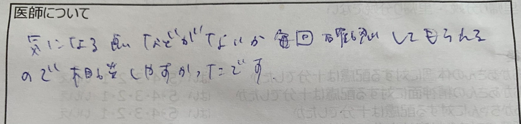 2024年4月のアンケートにお書きいただいた、患者さまからの感想、ご意見です。