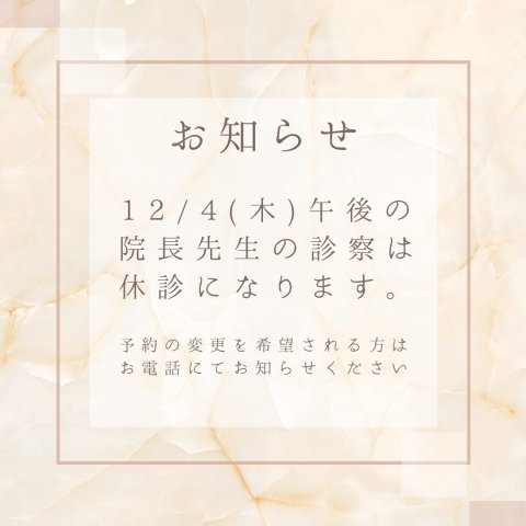 【休診のお知らせ】 12/4(木)午後の院長先生の診察は 休診とさせていた...