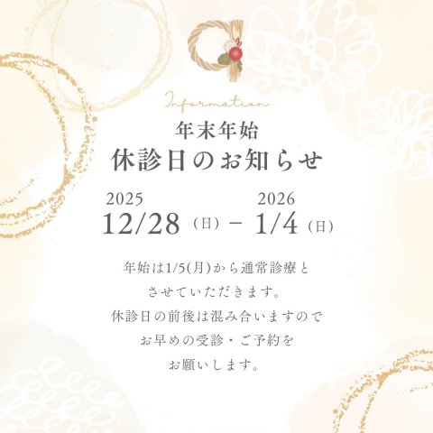 【年末年始の休診日のお知らせ】 当院では年末年始のお休みを 下記の日...